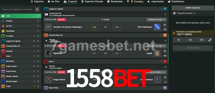 O 1558Bet oferece uma grande seleção de opções de apostas em e-sports com probabilidades competitivas